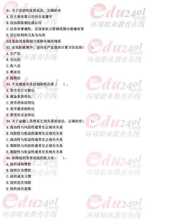 2011年經濟師考試《初級經濟基礎》真題及答案(5)