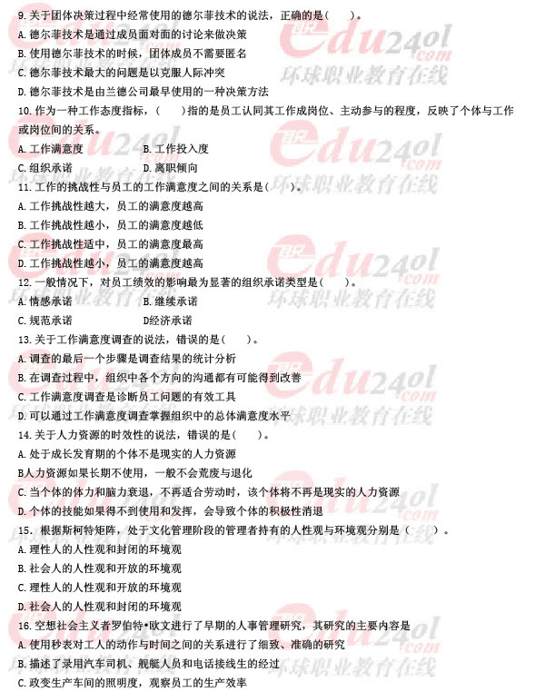 2011年經濟師考試《初級人力資源》真題及答案(2)