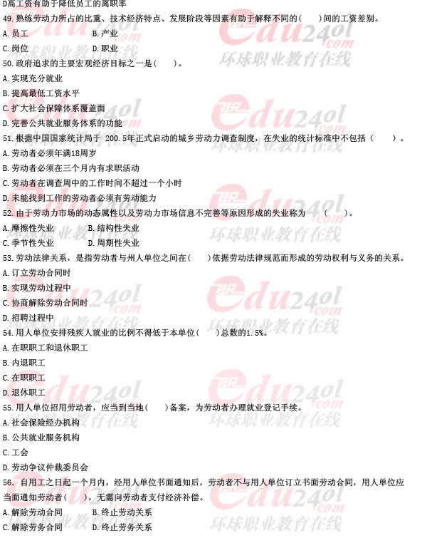 2011年經(jīng)濟師考試《初級人力資源》真題及答案(8)