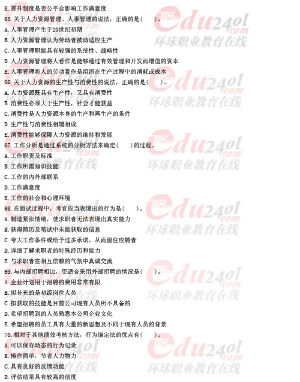2011年經濟師考試《初級人力資源》真題及答案(10)