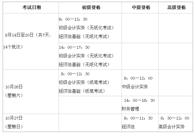 初級資格無紙化考試于9月14-20日舉行;初級資格紙筆考試、中級資格、高級資格考試于10月26-27日舉行。