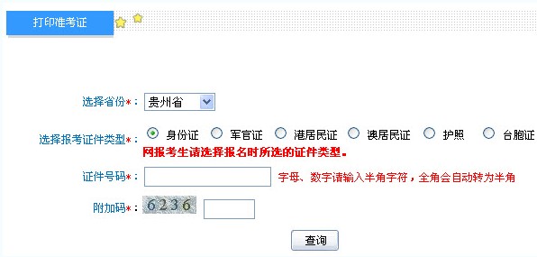 貴州省2013年初級會計職稱無紙化考試準考證打印入口