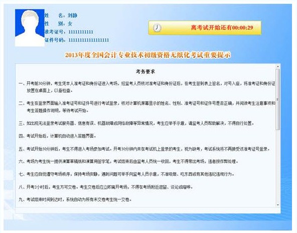 本文主要內(nèi)容介紹:2013年初級會計職稱無紙化機考重要事項提醒,機考系統(tǒng)登錄頁面及等待頁面展示,無紙化機考答題界面介紹,無紙化機考主要功能介紹,機考試題列表說明,無紙化機考結(jié)束考試注意事項。