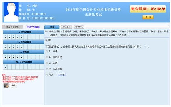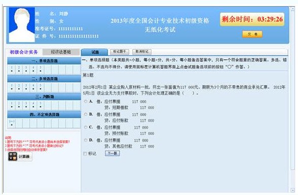 2013年初級會計職稱無紙化考試操作指南詳解
