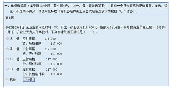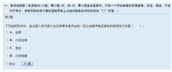 單項選擇題答題時,考生直接用鼠標點擊備選項中的認為正確的一個選項前的單選按鈕即可。如果需要修改答案,用鼠標點擊其他備選項即可;且系統(tǒng)只允許考生在所有備選項中選擇一個備選項作為答案。
