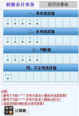 題目類型分為單項選擇題、多項選擇題、判斷題、不定項選擇題。紅色字體為說明部分:題號下方的*號表示該小題還未作答,?號表示該小題做過標記。