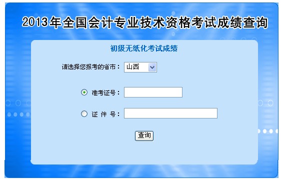 2013年山西初級會計職稱無紙化考試成績查詢入口