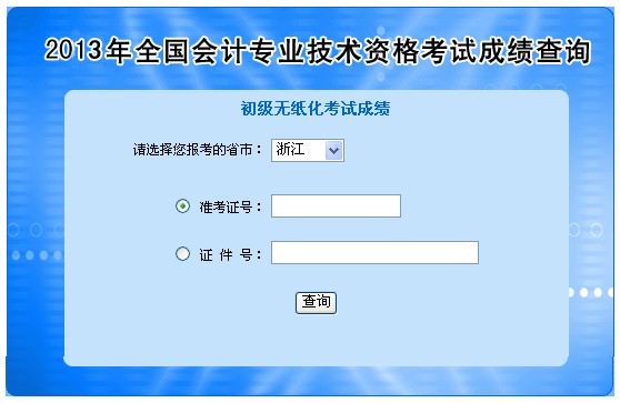 2013年浙江初級會計職稱無紙化考試成績查詢入口
