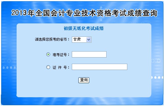 2013年甘肅初級(jí)會(huì)計(jì)職稱無紙化考試成績(jī)查詢?nèi)肟?/h1>
