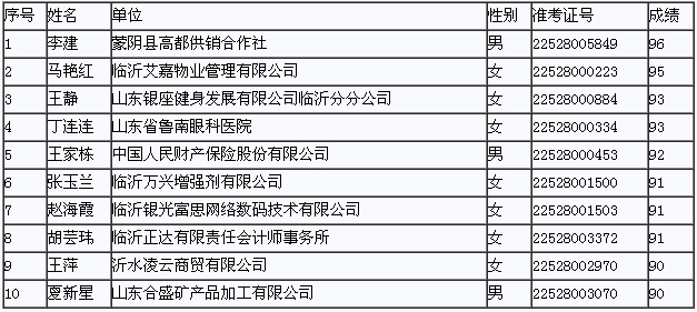 山東臨沂2013年初級會計職稱考試成績查詢通知