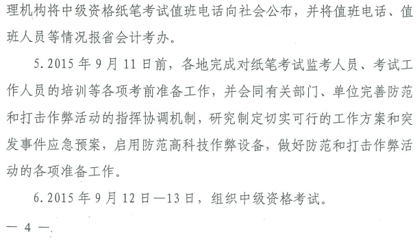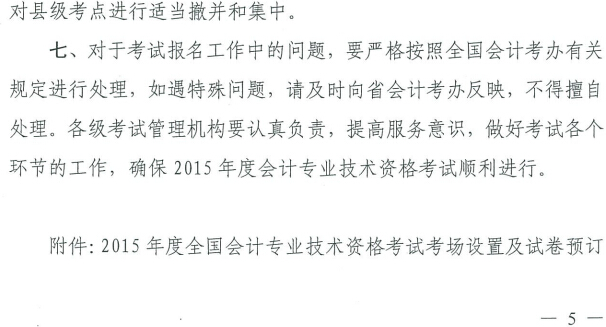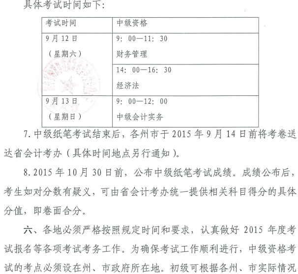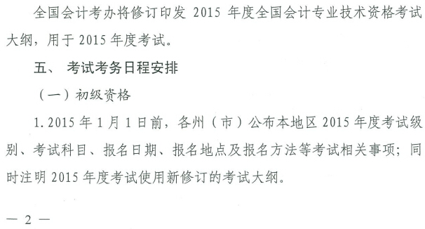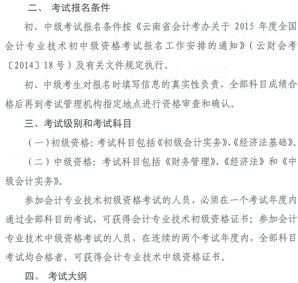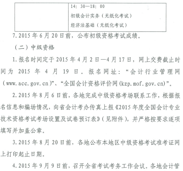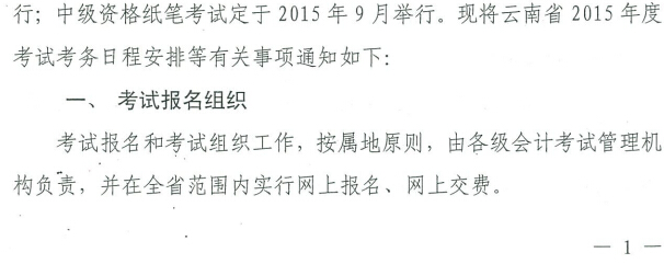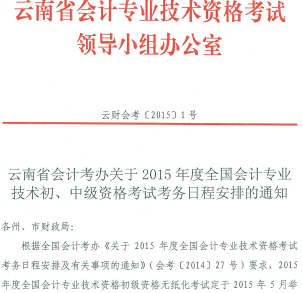云南省2015年初級會計職稱考試考務日程安排的通知