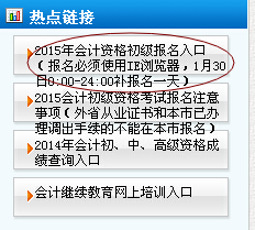 環球網校根據天津會計網發布的,天津2015年初級會計職稱補報名時間公布,補報名1月30日0:00-24:00補報名一天),考生可點擊進入“天津會計網”――右側“熱點鏈接”進行查看。