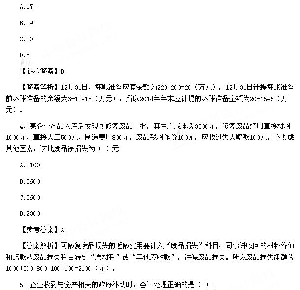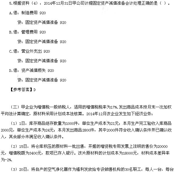 2015年初級會計(jì)職稱《初級會計(jì)實(shí)務(wù)》考試真題及答案(5月16日)