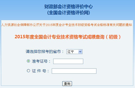 遼寧2015年初級會計職稱考試成績查詢?nèi)肟?/h1>