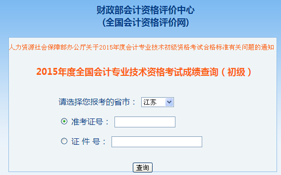 江蘇2015年初級會計職稱成績查詢?nèi)肟?/h1>