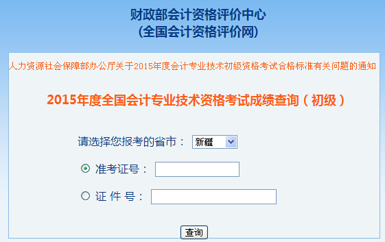新疆2015年初級會計職稱成績查詢?nèi)肟?/h1>