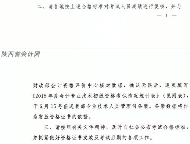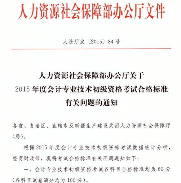 編輯推薦:2015年度初級會計職稱資格考試合格標準有關問題的通知