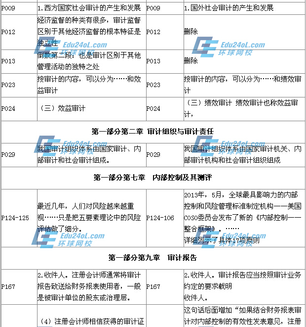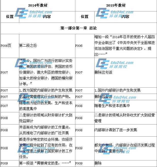 2015年初級(jí)審計(jì)師考試《審計(jì)理論與實(shí)務(wù)》新舊教材對(duì)比