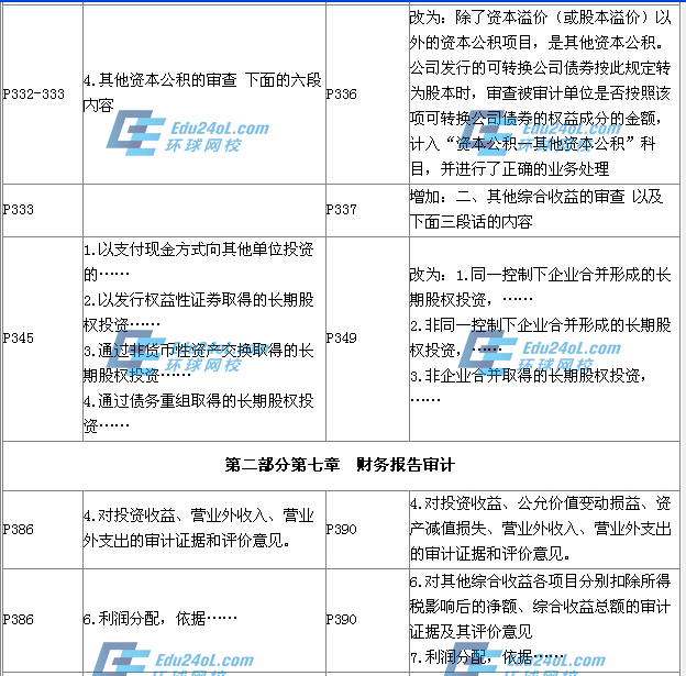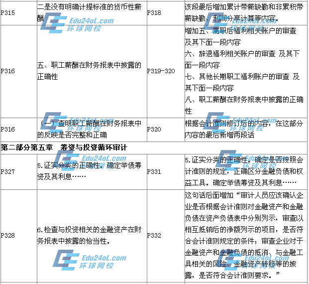 第五章籌資與投資循環(huán)審計(jì),主要增加了其他綜合收益的審計(jì)、投資計(jì)價(jià)正確性的審計(jì)也有實(shí)質(zhì)性變化;