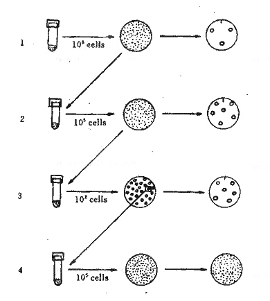 | 2.從不接觸鏈霉素的平皿上,按影印顯示耐鏈霉素菌落區(qū)挑取細(xì)菌增菌。 |