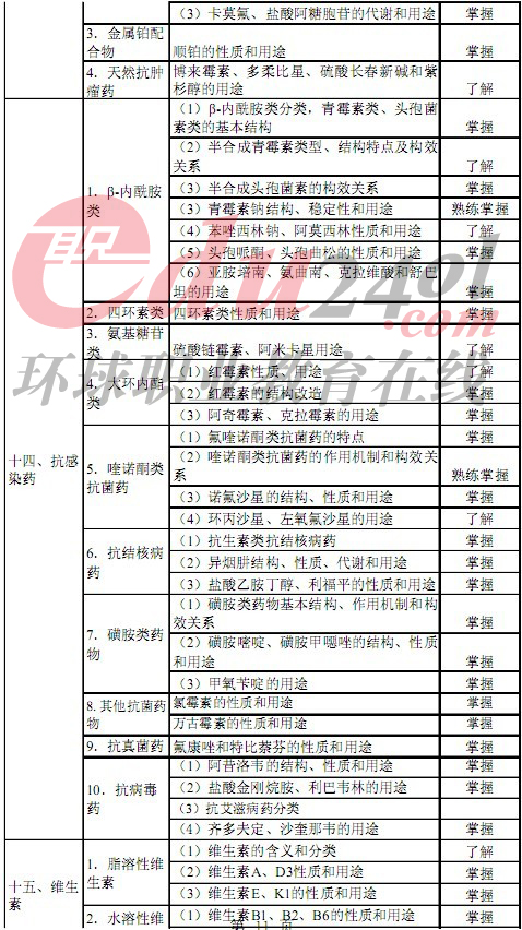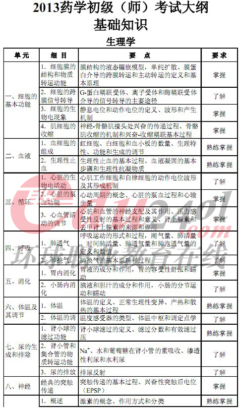 2013藥學(xué)職稱初級藥師(代碼201)考試大綱-基礎(chǔ)知識