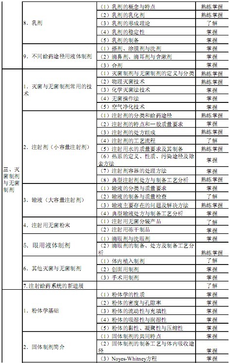 2013主管藥師(代碼366)考試大綱相關專業知識-藥劑學