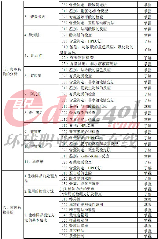 2013主管藥師(代碼366)考試大綱基礎(chǔ)知識-藥物分析