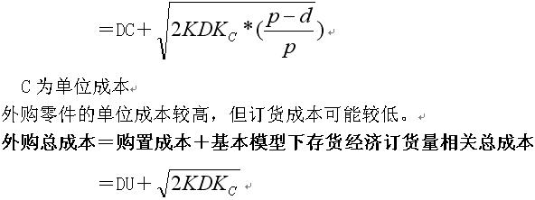 (2)陸續供應和使用的經濟訂貨模型,還可以用于自制和外購的選擇決策。