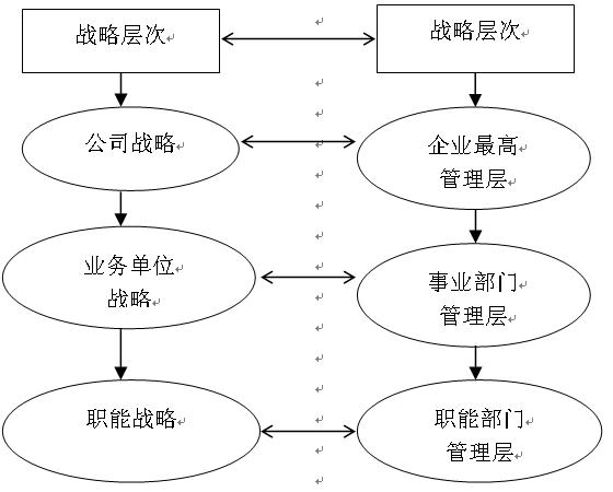 企業(yè)戰(zhàn)略可以劃分為三個(gè)層次:公司戰(zhàn)略、業(yè)務(wù)單位(競(jìng)爭(zhēng))戰(zhàn)略和職能戰(zhàn)略。一般而言,在競(jìng)爭(zhēng)領(lǐng)域的三個(gè)層面上,公司戰(zhàn)略指導(dǎo)和影響業(yè)務(wù)戰(zhàn)略,業(yè)務(wù)戰(zhàn)略則統(tǒng)領(lǐng)和整合職能戰(zhàn)略。