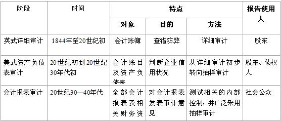 (三)注冊會計師審計從形成到發展經歷了詳細審計階段、資產負債表審計階段、會計報表審計階段。