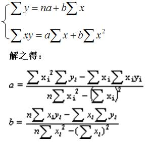設產銷量為自變量x,資金占用量為因變量y,它們之間的關系可用下式表示: