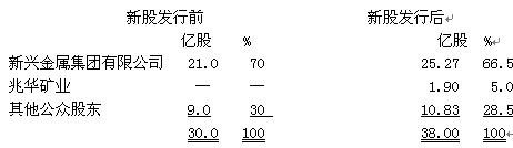 新興鋼鐵按照相關證券法規,以每股人民幣2.5元的價格向兆華礦業定向發行1.9億股普通股,并以相同價格向現有股東配售6.1億股普通股。新股發行前后的股份變動如下: