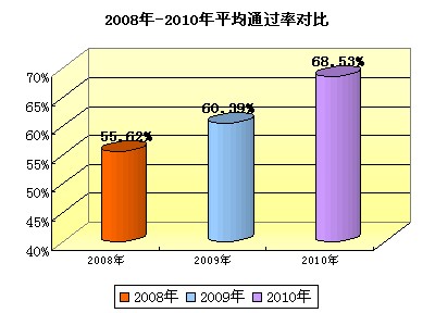 環球網校2008年-2010年平均通過率為:2008年55.62%,2009年60.39%,2010年68.53%。