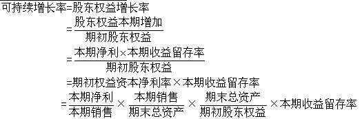 可持續(xù)增長(zhǎng)率是指不增發(fā)新股并保持目前經(jīng)營(yíng)效率和財(cái)務(wù)政策條件下公司銷售所能增長(zhǎng)的最大比率。