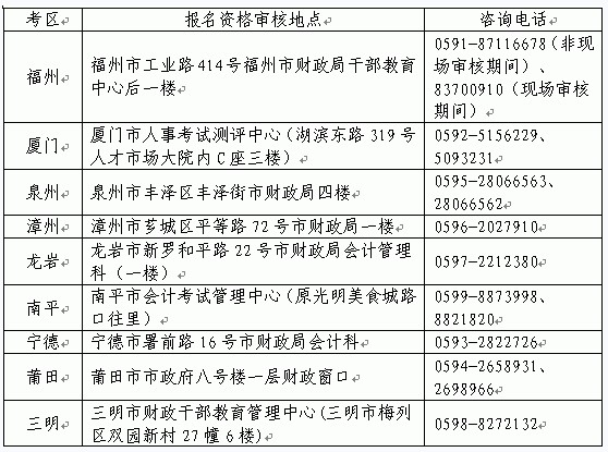 各考區(qū)資格審核地點和聯(lián)系方式: