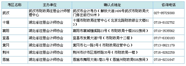 湖北省2013年注冊會計師資格審核確認點地址及電話