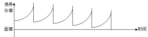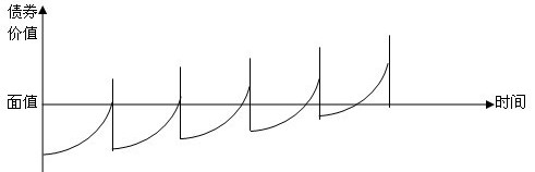 (2)平價發行的分期付息債券:整體趨勢保持不變,在兩個付息日之間逐漸上升。