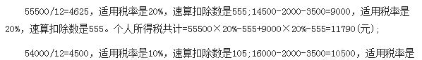 25%,速算扣除數是1005;個人所得稅共計=54000*10%-105+10500*25%-1005=6915(元)