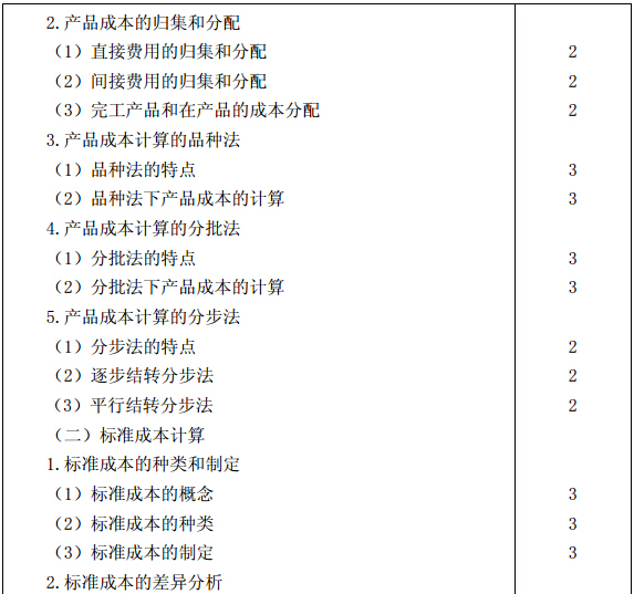 4.成本計算,包括產品成本計算、標準成本計算和作業成本計算;