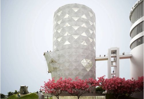 這是由荷蘭事務(wù)所NL設(shè)計的一個位于荷蘭阿姆斯特丹的室內(nèi)室外攀爬和戶外運動館項目,這個新生的設(shè)計呈現(xiàn)表皮的突起,從而為攀爬愛好者提供良好的攀爬空間和條件。這個設(shè)計的外立面被很多三角形環(huán)繞,形成雕塑般的形體,結(jié)構(gòu)慢慢上升,三角形的形態(tài)變成玻璃的開口,形成能夠觀看周圍景色的窗戶。