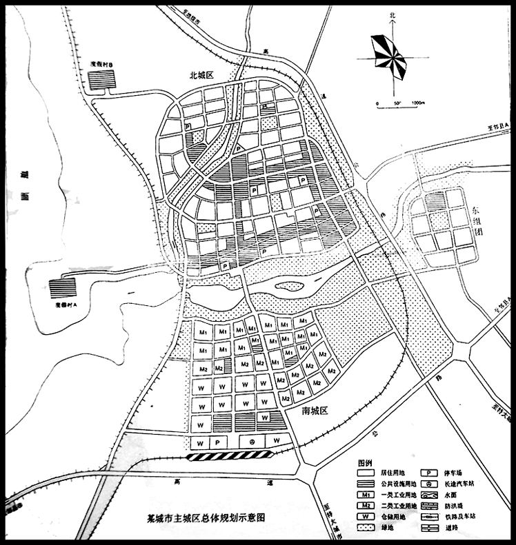 圖為某市25萬人口的城市主城區總體規劃示意圖.