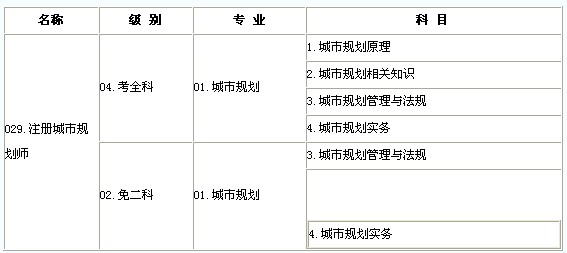 注冊城市規劃師執業資格考試設:《城市規劃原理》、《城市規劃相關知識》、《城市規劃管理與法規》、《城市規劃實務》4個科目。