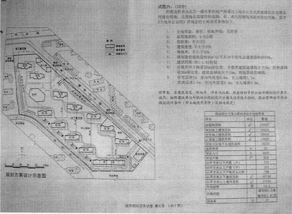 附圖及附表為北方一城市某房地產商通過土地出讓方式所獲得的住宅商品房建設用地,該用地北鄰城市快速路,東、南與西側均為現狀居住用地。其中《土地出讓合同》所規定的土地使用條件如下: