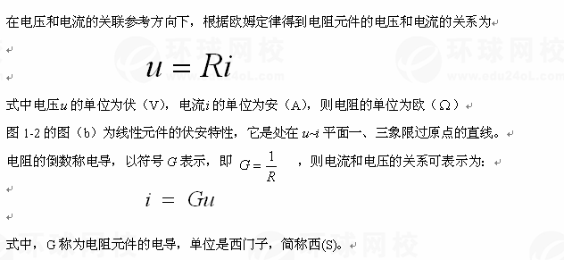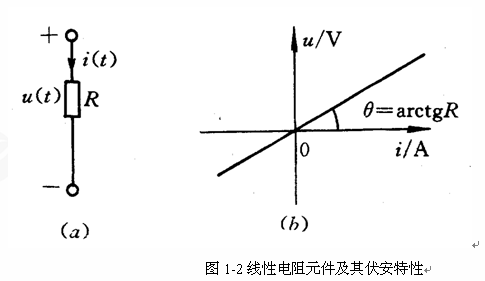 電阻元件是實際電阻器和消耗電能的電器元件的理想化模型,本書中是指線性電阻元件,它的電阻值不隨其上電壓或電流數(shù)值變化,圖形符號和伏安特性如下圖所示