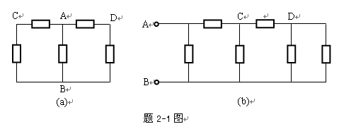 例2-2 題2-2圖(a)、(b)所示兩個電路,求a、b兩端的等效電阻。