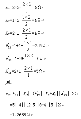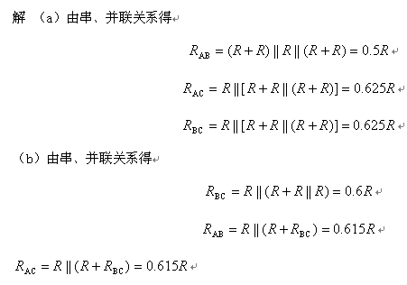 例2-1 求題2-1圖所示電路AB、AC、BC間的總電阻、、。