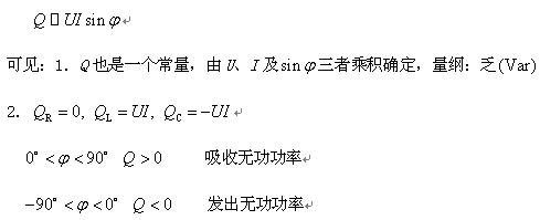 正弦穩態一端口電路內部與外部能量交換的最大速率(即瞬時功率可逆部分的振幅)定義為無功功率Q,即