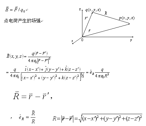 電場強度的定義:電場中某點的電場強度是一個矢量,其大小等于單位試探電荷在該點所受力的大小,其方向與正電荷在該點的受力方向一致。其數學表示式為