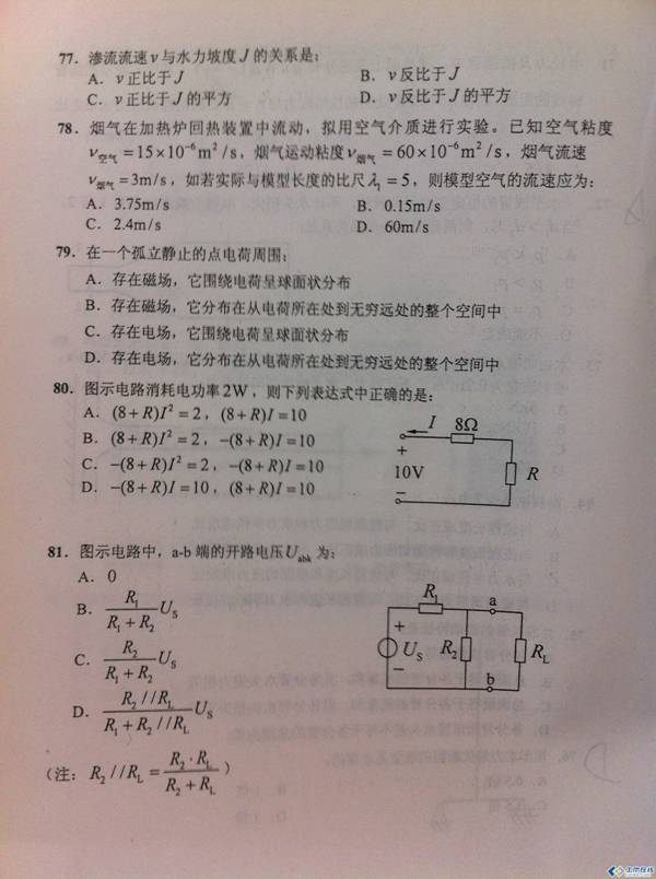 摘要 2013年電氣工程師公共基礎知識真題上(圖片版)―單選77―81