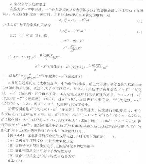 摘要 2014年注冊電氣工程師基礎考試之氧化還原反應的方向和限度